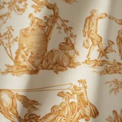 Une authentique Toile de Jouy imprimée dans un camaïeu de jaunes solaires sur coton crème. Une teinte lumineuse et vive appréciée au XVIII ème siècle pour son évocation de l'or.