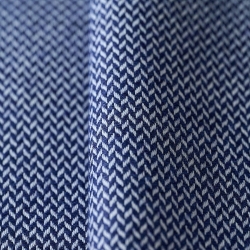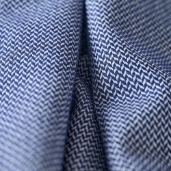 Ce tout petit chevron décalé évoque un natté en diagonale. Son tissage dense et serré de laine et coton fait de lui un faux-uni idéal pour apporter de la texture à un choix de tissus pour une pièce. Tesselle, avec sa bonne résistance à l’abrasion, est idéal pour l’ameublement. Avec ses nuances lumineuses et fraîches, il se coordonne avec bonheur au Jacquard Viking avec lequel il dialogue par un jeu d’échelle.