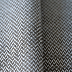 Ce tout petit chevron décalé évoque un natté en diagonale. Son tissage dense et serré de laine et coton fait de lui un faux-uni idéal pour apporter de la texture à un choix de tissus pour une pièce. Tesselle, avec sa bonne résistance à l’abrasion, est idéal pour l’ameublement. Avec ses nuances lumineuses et fraîches, il se coordonne avec bonheur au Jacquard Viking avec lequel il dialogue par un jeu d’échelle.