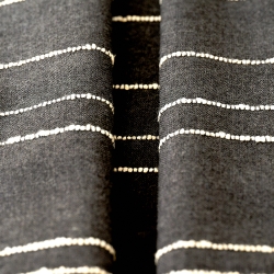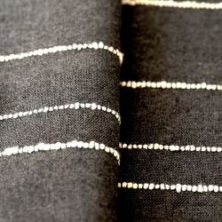 Proposé en tissu pour rideaux, Suffolk, sous son allure intemporelle, revendique la personnalité audacieuse d’une main authentique et vraie. Il évoque le tissage artisanal par l’irrégularité assumée de sa bouclette et l’audace de son graphisme horizontal.