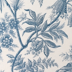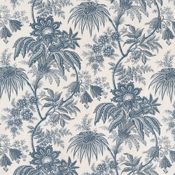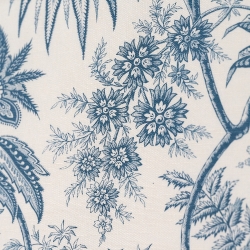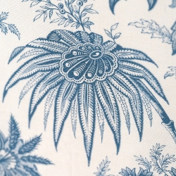 Ce tissu est une Indienne qui vous invite à un voyage dans une flore tropicale. Imprimé sur un métis (lin et coton). Cet imprimé historique est revisité dans des coloris qui lui donne un aspect contemporain tout en préservant son style.