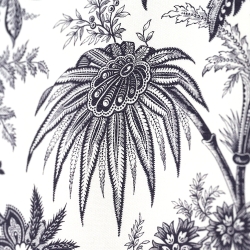 Ce tissu est une Indienne qui vous invite à un voyage dans une flore tropicale. Imprimé sur un métis (lin et coton). Cet imprimé historique est revisité dans des coloris qui lui donne un aspect contemporain tout en préservant son style.